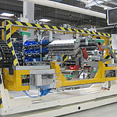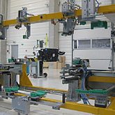 Die Montagelinie verfügt über Einstellvorrichtungen. Diese hängen auf einem Schienensystem, welches durch die komplette Montagelinie verläuft.